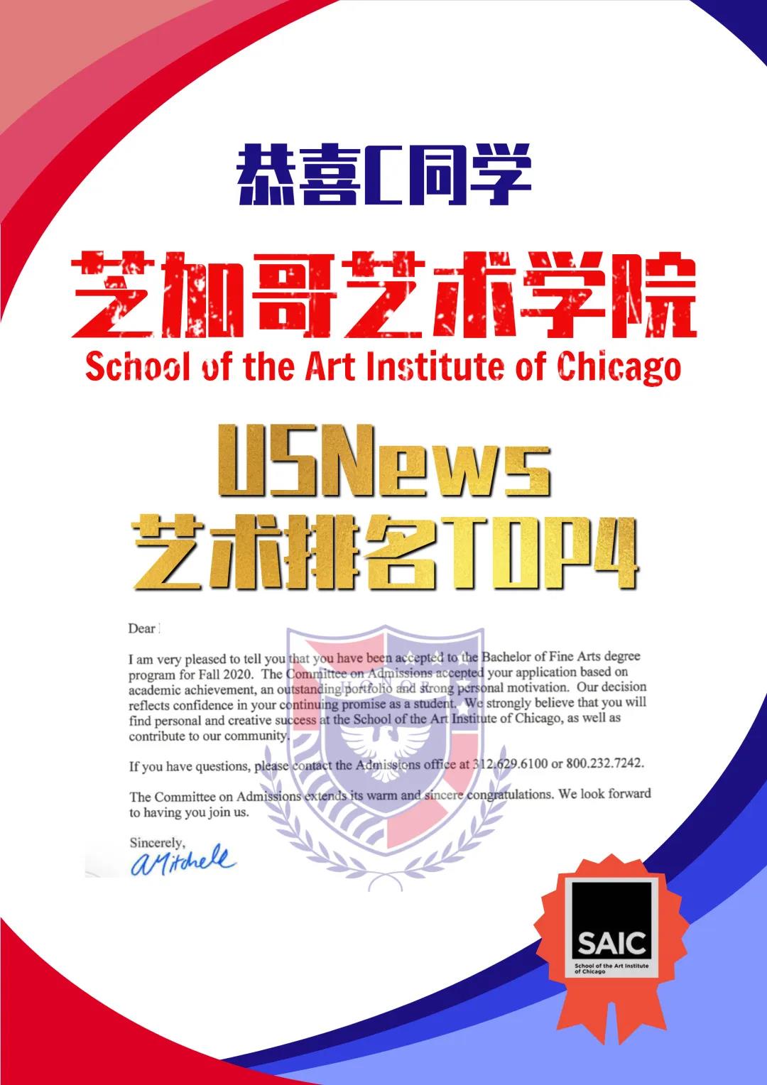 两位同学获得了萨凡纳艺术与设计学院的录取通知。萨凡纳艺术与设计学院Savannah College of Art and Design(SCAD),位于美国佐治亚州的萨凡纳市中心,是全美最大的艺术学院,也是全球最大的艺术大学之一。该校被称为“最热门的艺术学习中心”许多著名品牌设计师及迪斯尼动画师皆出自该校,例如Facebook的首席设计师Kate Aronowitz。萨凡纳艺术与设计学院QS 世界艺术与设计大学排名36。